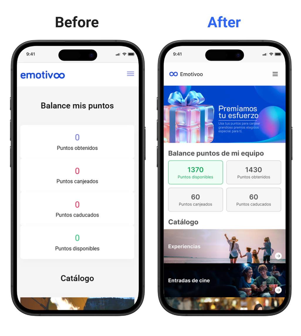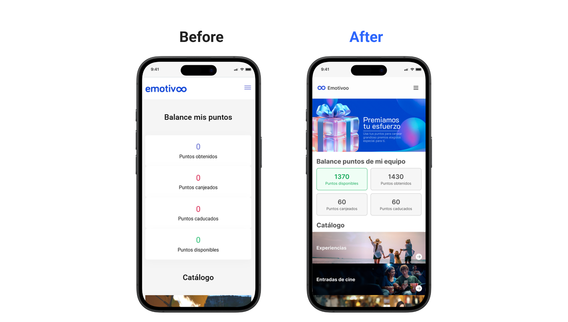 This project transformed Emotivoo from a functionally correct but visually outdated product into a coherent, modern rewards platform.